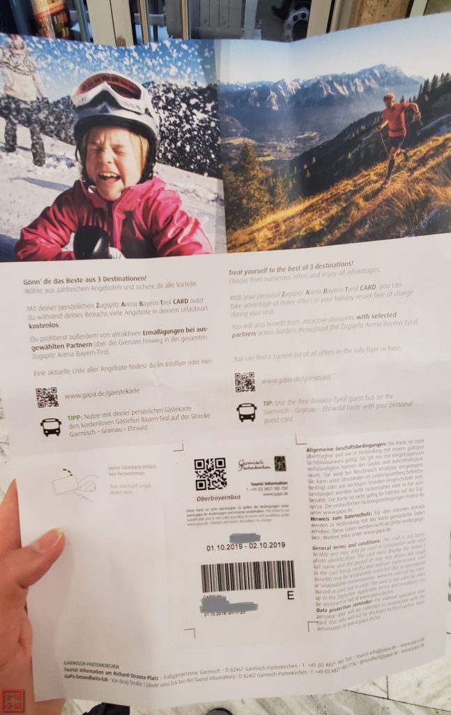 如果你有在GP小鎮住宿的話,應該可以得到這張遊客卡,詳情介紹可以點這裏。德國自由行會發現有兩件事非常好康,第一就是很多地方付了城市稅,會給你一張免費搭巴士的遊客卡,第二就是YHA青旅都會包含早餐…好吧離題了。反正我就是用這張遊客卡搭車的,他是普通白紙上面貼個膠膜,上面印了你的名字和條碼,可以撕出來一次性的卡片,不必煩惱歸還卡片的問題,離開住宿那天全日都可以使用,但入住當天要預留時間給他們製作卡片哦。